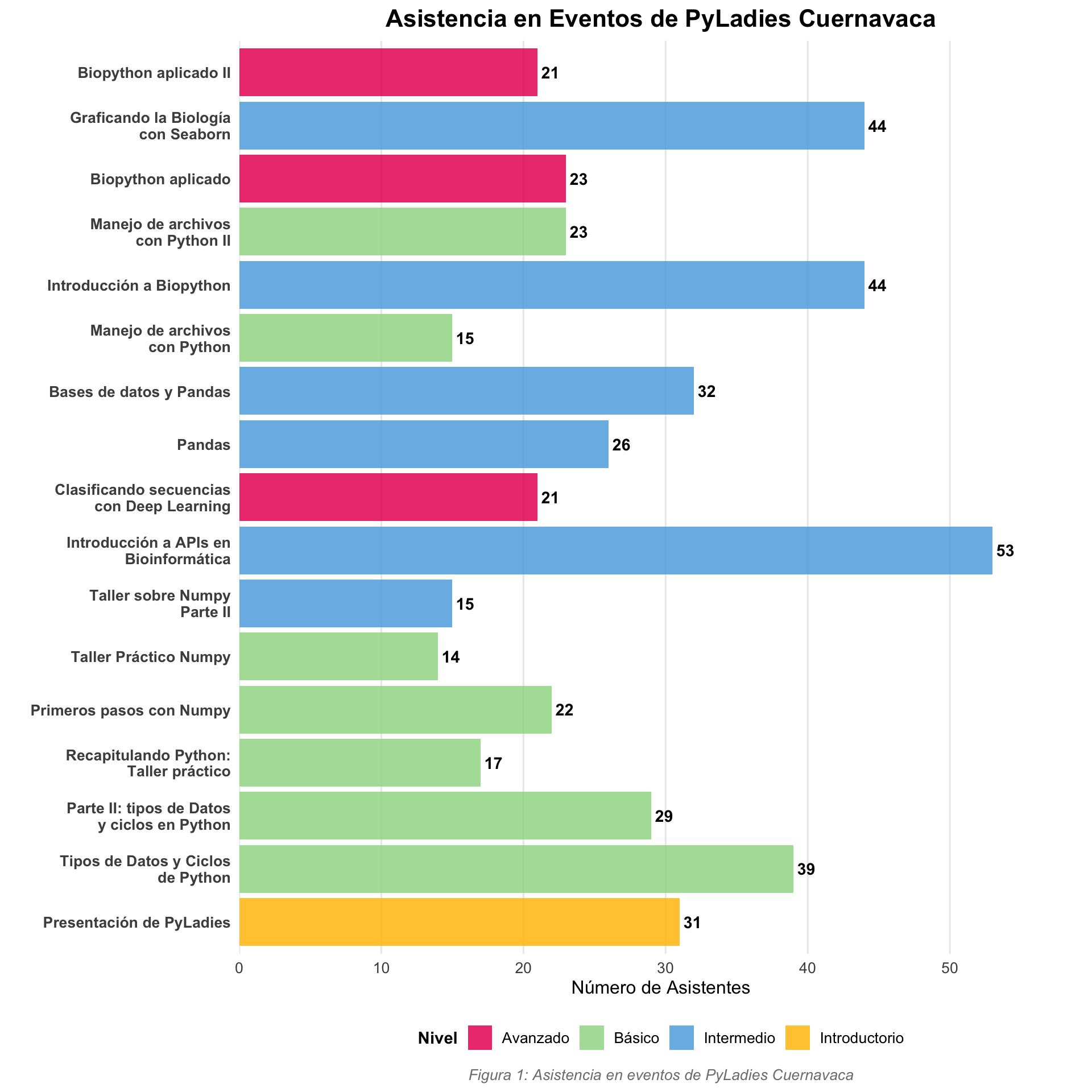 - Taller más concurrido: Introducción a APIs en Bioinformática (53)